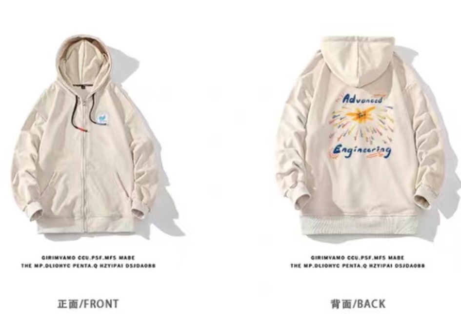 2302班班服底色为杏色,象征着生命的力量和不断向上的精神状态。左胸上的班徽是一头威武的雄狮,激情和热血迸发而出,代表着班级成员彼此相连的羁绊。