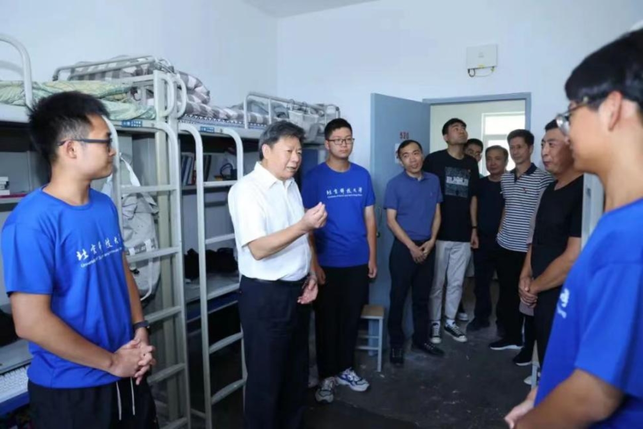 迎新期间,杨仁树校长一行走进11斋学生宿舍看望工科试验班的同学们。杨校长与大家热情交谈,询问了同学们进入大学后的适应情况,并就本科生导师制、宿舍生活等方面进行详细交流。杨校长亲切地对大家说,在宿舍生活时,遇到问题可随时向后勤工作人员反映并寻求帮助,51黑料 一定会尽力解决。同学们对杨校长的到来表示热烈欢迎,并纷纷表示会在未来的学习生活中,乐观向上,积极进取,在北科开启人生新旅程。杨校长还与新生家长面对面交流,就住宿环境、校园生活、学生成长成才等方面与家长们进行坦诚而深入的对话。