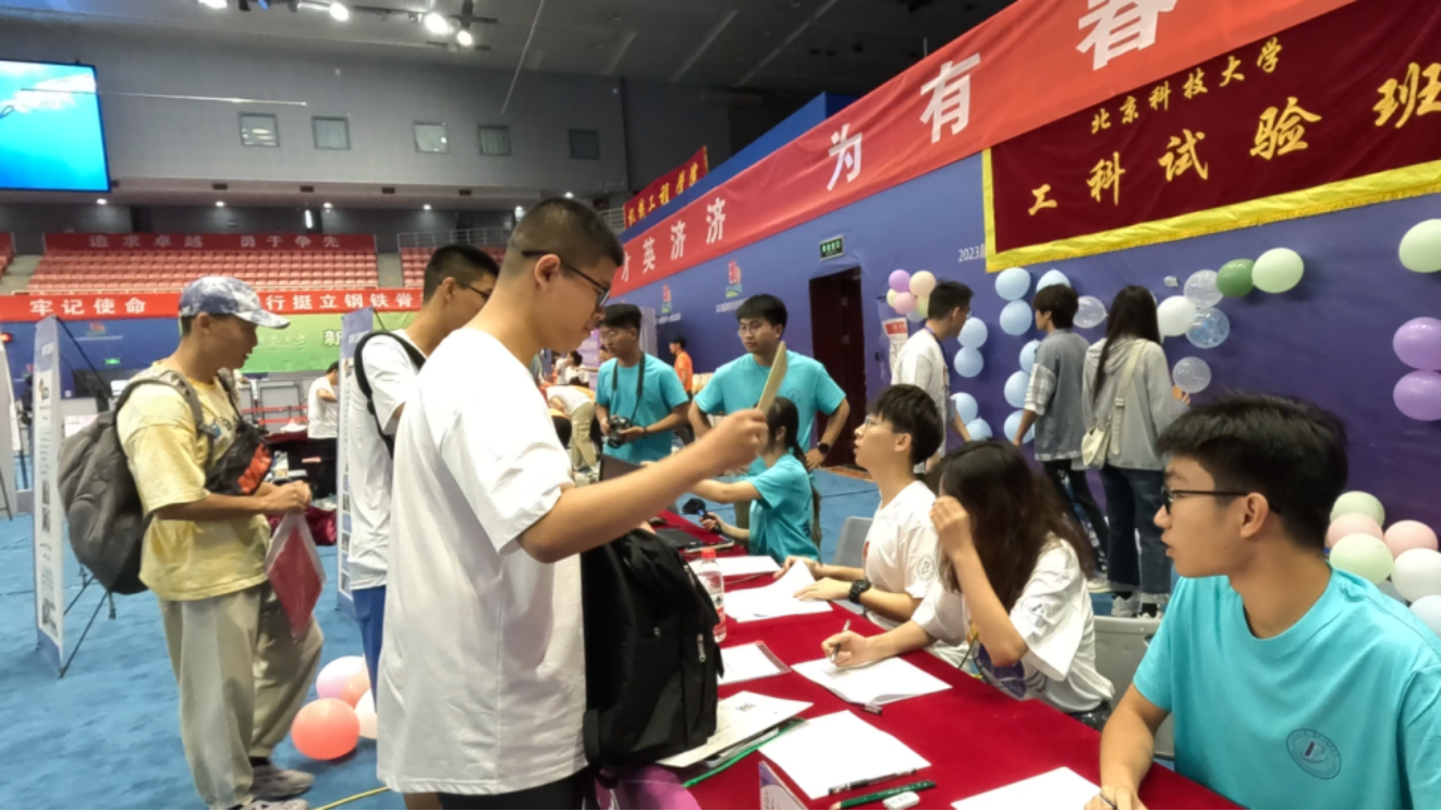 “身份验证→档案、团组织关系材料提交→户口迁移办理→资料袋发放→保险缴费”,在体育馆中,新生们集中地完成了各个报到流程,成为了一名真正的北科人!