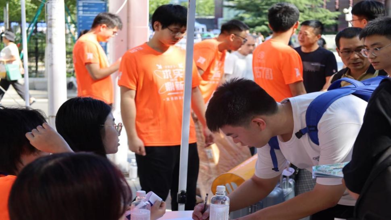 早上6点57分,第一位小狮子来到了体育馆的门口,在学长学姐们热情的“簇拥”下完成了在高工的第一次“打卡”。