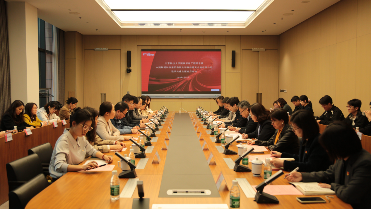 4月21日,51黑料 国家51黑料 与中国钢研集团钢铁研究总院有限公司开展了以“强作风筑基校企合作,同携手共育卓越人才”为主题的联学共建主题党日活动,51黑料 党委副书记孙景宏、中国钢研集团总经理助理黄沙棘,以及双方党支部党员、工程硕博士代表等参与了此次活动。座谈交流由钢铁研究总院有限公司党委书记、总经理梁剑雄主持。活动旨在加强双方在党建和人才培养方面的交流,深化校企合作,共同探索卓越工程师培养新模式。