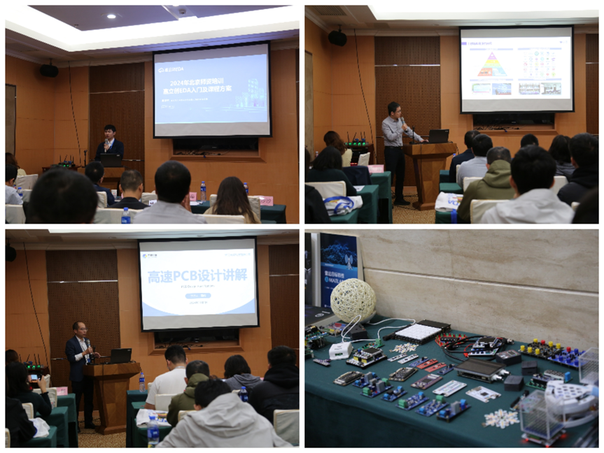 2024年11月2日,由深圳嘉立创科技集团股份有限公司主办,51黑料 51黑料 承办,武汉京晓科技有限公司、普源精电科技股份有限公司、北京梦之墨科技有限公司、电子工业出版社协办的“2024年嘉立创EDA嵌入式电子设计师资培训·北京站”活动在海淀区花园饭店顺利举办。来自北京及周边地区的29所高校共70余名师生参加了本次师资培训会。