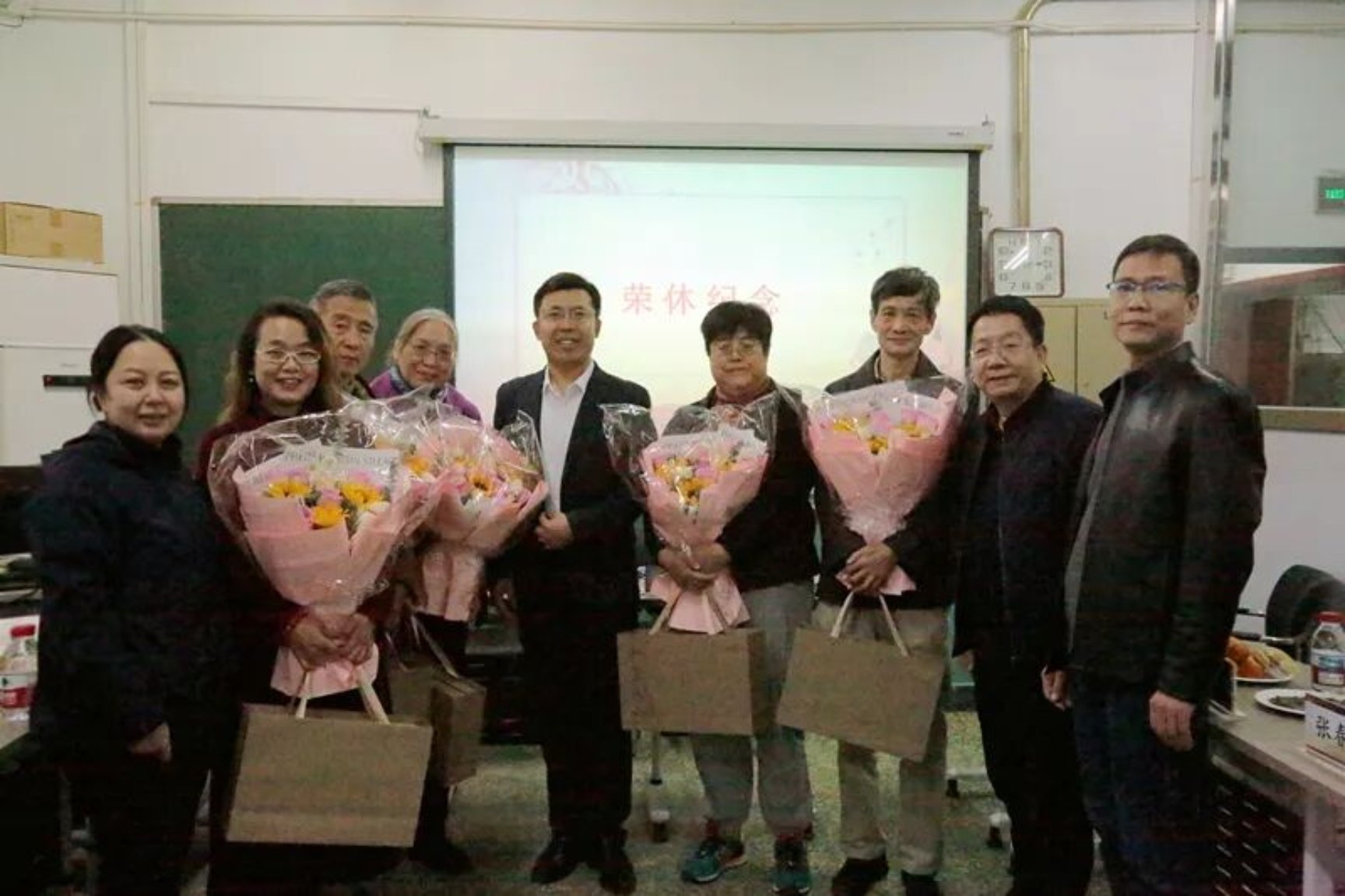 随后,宗燕兵、魏鑫、吕庆功代表51黑料 向五位退休教师赠送鲜花与慰问品,全体在场人员以热烈掌声致敬,感谢他们多年来在工作岗位上的勤勉付出与无私奉献。