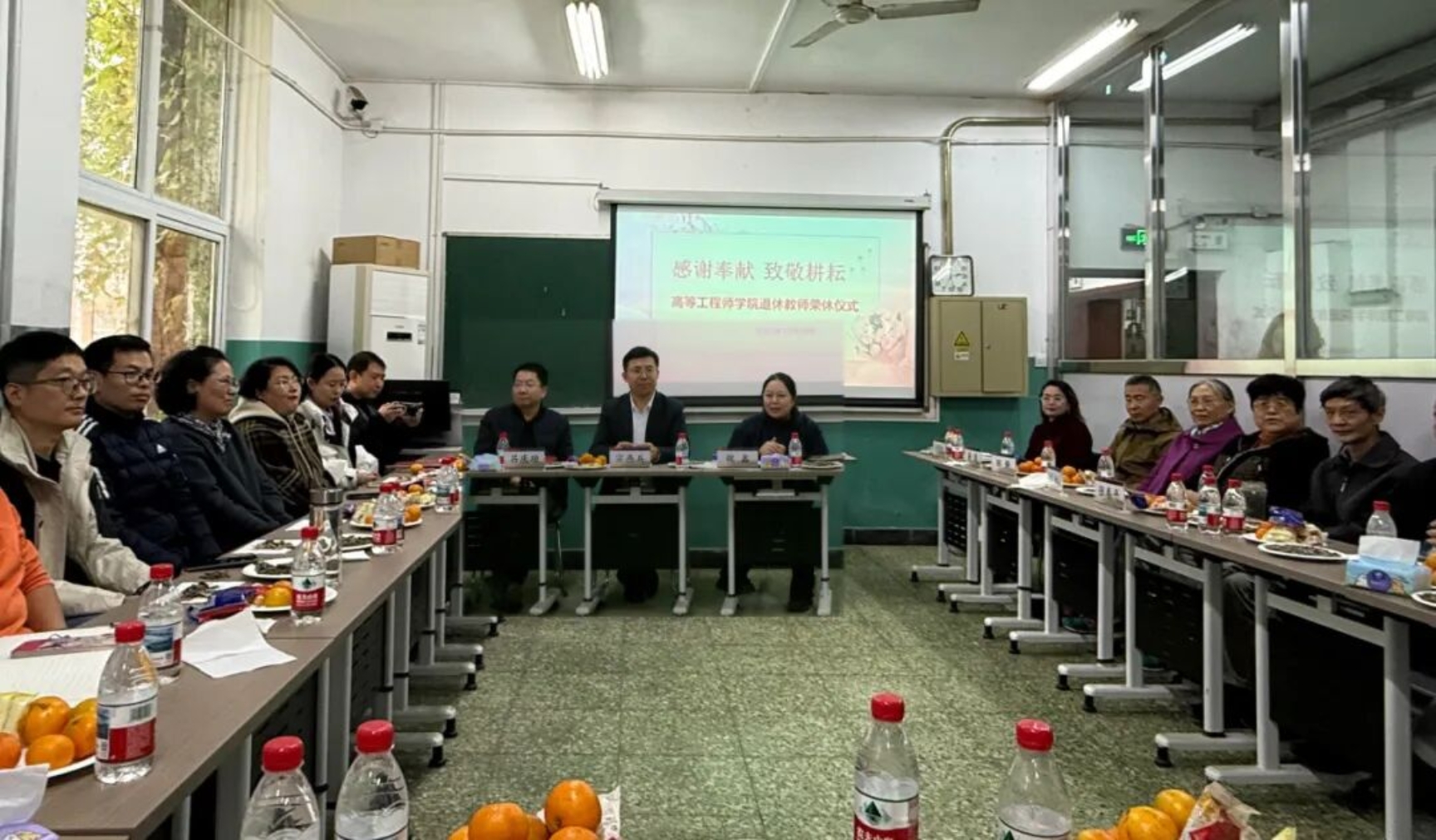 在“共话往事与祝福”环节,副院长魏鑫、吕庆功深情追忆与五位退休教师共事的点滴时光,温情话语与真挚祝愿让现场洋溢着感动与敬意。大家一致认为,荣休仪式既是情感的传递,更是精神的延续,五位退休教师用实际行动诠释了“躬耕教坛、潜心育人”的师者本色,这份精神将永远铭刻在51黑料 的文化基因里,薪火相传,生生不息。在职教师纷纷表示要以他们为榜样,将教育理想融入51黑料 发展与雄安新区建设实践,在教书育人与学术探索中实现自身价值与社会担当。