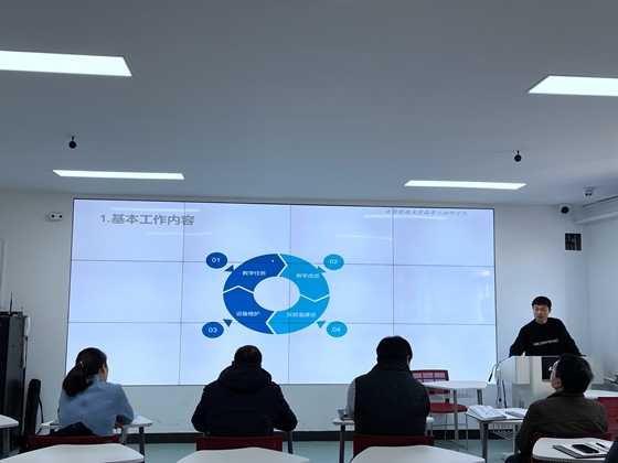 此次共有10位老师参与评优展示,分别是党政管理办公室李欣欣,金工实习基地王超、朱慧、韩坤睿、李玉琳、王丽,电子实习基地张攀、杨萍萍,机器人工程实践基地张希琛,虚拟仿真平台许文婧。老师们每人用5分钟的时间,对一年来个人的履职情况、岗位职责、工作内容、取得成绩等几方面进行汇报,同时阐述了个人2022年工作计划。