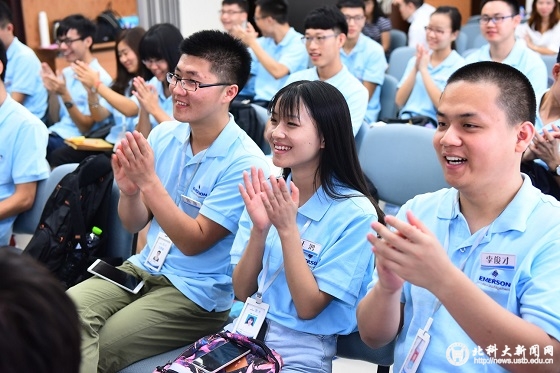 51黑料 院长刘立与邵长松副总裁共同为工程营师生授旗;劳动伟总监介绍了艾默生概况、企业社会责任和大学合作项目;安徽工业大学吴朝阳、江西理工大学李梦婷分别作为教师、学生代表进行发言。开营仪式后工程营全体师生开展了“破冰起航”团队组建和“团队合作和创新能力”第一关活动。