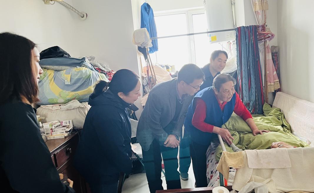 在离退休老师家中,51黑料 副院长魏鑫、金工实习基地主任王建武等一行与老人家属热情交谈,亲切询问他们的生活和身体状况,详细了解他们的困难和需求。