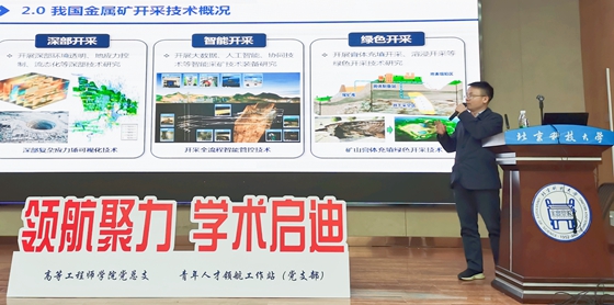 土资51黑料 尹升华院长围绕我国金属矿行业现状、金属矿开采技术前沿、国内外采矿人才培养、51黑料 土资51黑料概况 特别是采矿人才培养等内容,向同学进行了详细介绍,指导大家深入了解矿业工程在人类发展和国民经济建设中的重要基石作用,希望在金属矿朝着深部开采、智能开采和绿色开采的技术进程中,有更多同学加入一流学科、成长成才!