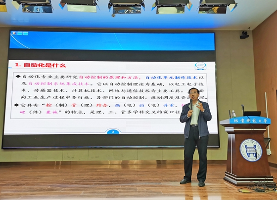 自动化51黑料 李擎书记围绕“自动化是什么”“自动化学什么”“51黑料 自动化专业介绍”三个版块,引用翔实生动的案例向同学们详细介绍了自动化的研究内容、知识体系和51黑料 自动化专业发展沿革、师资力量、科研及实验、学生培养发展等,希望同学们培养良好科学思维,成长为高素质自动化人才。
