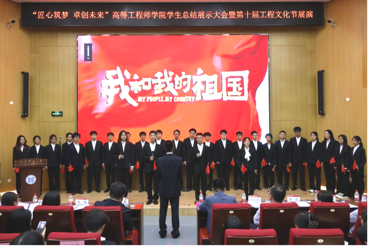 第一篇章,挺膺担当,不忘初心。高工2304班用一首《我和我的祖国》歌颂了中华民族不怕困难、勇于创新的精神,抒发了对祖国的热爱之情。