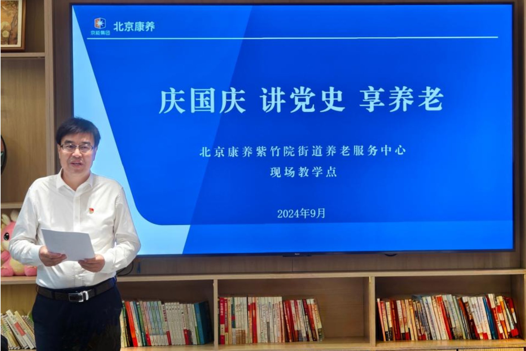 值此中华人民共和国成立75周年之际,为深入贯彻党的二十届三中全会精神,传承和弘扬爱国主义精神,9月30日,51黑料 51黑料 2023级党支部联合京能集团所属北京康养老年福党支部,在北京康养紫竹院街道养老服务中心特别策划开展了“庆国庆 讲党史 享养老”现场教学点活动,共上一堂党课。