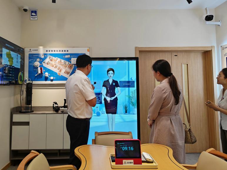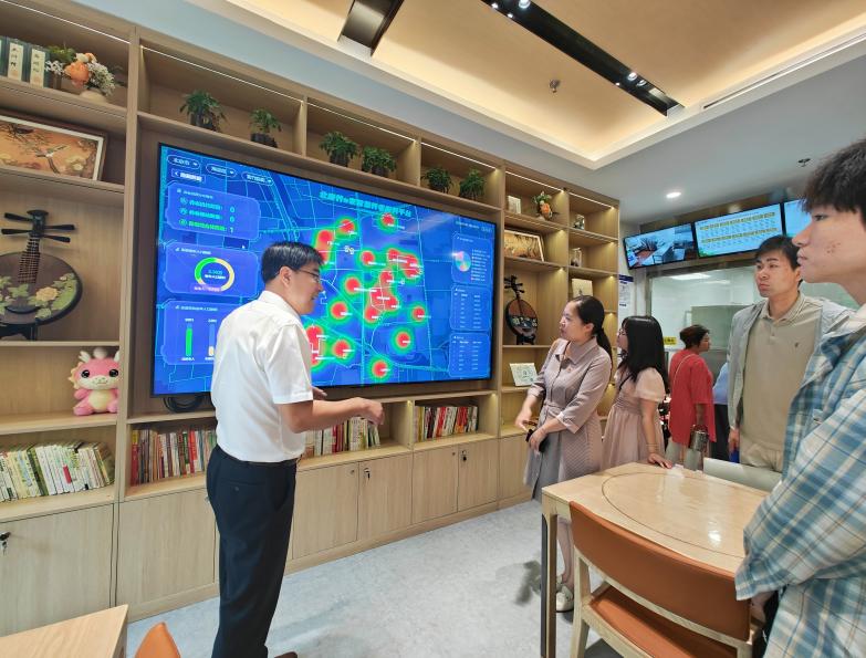 参观过程中,张文峰介绍了中心综合服务区、社区餐厅、医养服务区、托养服务区、老年学堂等平台建设和智慧养老服务运行情况。中心聚焦老年人最基本、最共性、最刚性的养老难题进行系统设计,采用“互联网+物联网+硬件”的智能组合,为长者打造安全温馨的智慧之家,受到了社会的广泛关注和广大老年人的高度认可。